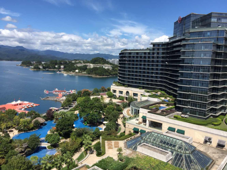 苏州结束后,我们就来到了杭州千岛湖。万万没想到的是,带我们入住了一个可以180度看千岛湖的湖边豪华观景酒店: